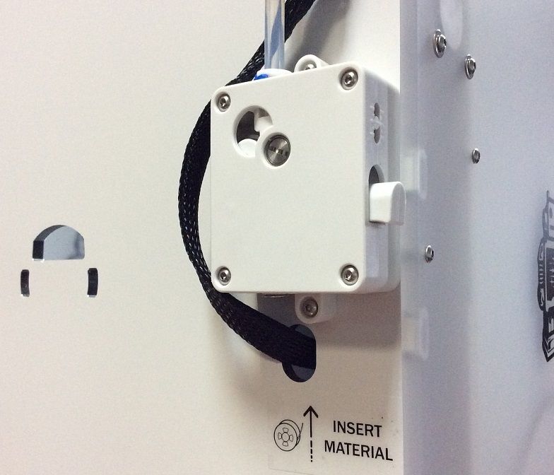 В новой модели Ultimaker 2 Extended+ был осуществлен апгрейд механизма подачи пластика путем увеличения ее размеров. Кроме того, была добавлена кнопка разжимания механизма подачи. Таким образом, зажеваный пластик теперь будет достаточно легко извлечь. Сама подача стала работать очень плавно, хоть и немного громче.