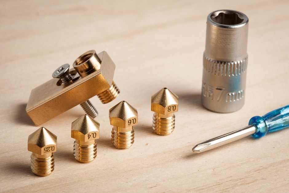 Olsson block - хотенд, имеющие сменные сопла различных диаметров, позволяющий осуществлять быструю замену. Комплект состоит из 4х сопел: 0,13 мм, 0,4 мм, 0,6 мм и 0,8 мм. Замена сопел позволит Вам получать оптимальное качество печати. Компании Ultimaker разместило данный акссесуар в свой официальный перчень.