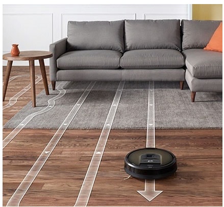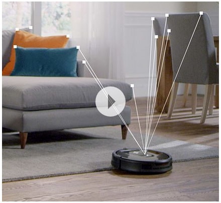 Roomba 980 расширяет охват по всем уровням вашего помещения, использует запатентованную технологию vSLAM-IROBOT, создаёт визуальные ориентиры в своей личной карте, поэтому он не теряется, где он был, убирал, а где ещё нет.