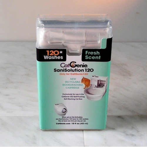 SaniSolution Smart Cartridge выделяет необходимое количество чистящего средства, используемого для промывания лотка и гранул наполнителя. В состав чистящего средства входят ингредиенты, используемые ветеринарами для дезинфекции операционных.