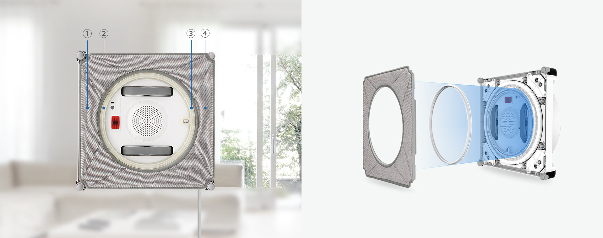 Winbot 950 автоматически очищает окна с рамами и без, раздвижные стеклянные двери, дверцы душевых кабин, стеклянные перила и многое другое. Снаружи и внутри. 4-сторонний бампер распознает препятствия и рамы окон, а датчики обнаружения краев позволяют роботу Winbot работать на окнах без рам.