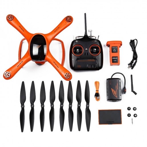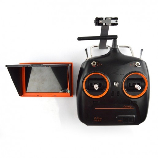 В данной комплектации модель имеет пятидюймовый FPV ЖК-экран с встроенным приемником, что позволяет видеть качественное и четкое изображение. Кроме отображения онлайн видео с камеры FPV ЖК экран показывает различные параметры полета, такие как скорость полета или напряжение батареи.