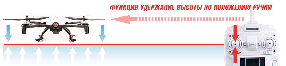 Многим начинающим пилотам знакома ситуация: при неуверенном владении ручкой газа, квадрокоптер или вертолёт улетает из пределов видимости. Новый Galaxy Visitor 3 имеет функцию ограничения высоты полёта: при любом положении ручки газа выше среднего, высота полёта будет сохраняться в пределах 2-3м. Данная функция также незаменима для полётов в просторных помещениях.