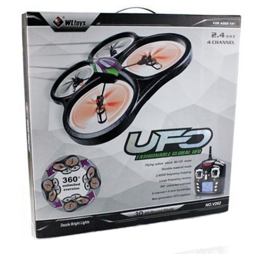 Квадрокоптер WL Toys V262C UFO 2.4 Ghz + видеокамера RTF с 6-осевым гироскопом, автоматической стабилизацией и подсветкой. Самый большой квадрокоптер в линейке WLToys с размером 61.5 см по диагонали.