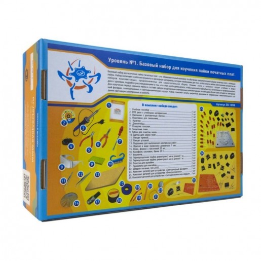 Базовый набор «Эвольвектор» для изучения пайки печатных плат специально создан для того, чтобы переход от макетных к печатным платам был настолько лёгким и простым, насколько это возможно. Набор содержит обширный учебный курс, который поможет быстро освоить премудрости паечных работ, и оградит от ошибок, свойственных начинающим монтажникам. Особое внимание в нём уделено правильному подбору инструмента и материалов, чтобы пайка приносила только удовольствие и не возникало никаких проблем при выполнении данного вида работ. Причём данный учебный курс отражен не только во входящем в состав набора учебнике, но и реализован в виде обучающих видеороликов. Это делает освоение пайки максимально наглядным и эффективным.