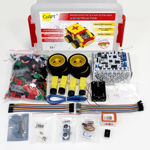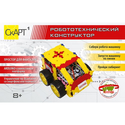 Набор предназначен для обучения сборке и программированию робота-машинки. В комплекте есть цифровые датчики, которые позволят сделать робота, ездящего по линии или проходящего лабиринт. Благодаря входящему в комплект модулю Bluetooth, для собранного робота доступно управление с помощью смартфона или планшета. СКАРТ — это готовые робототехнические решения российского производства от резидента инновационного центра Сколково.