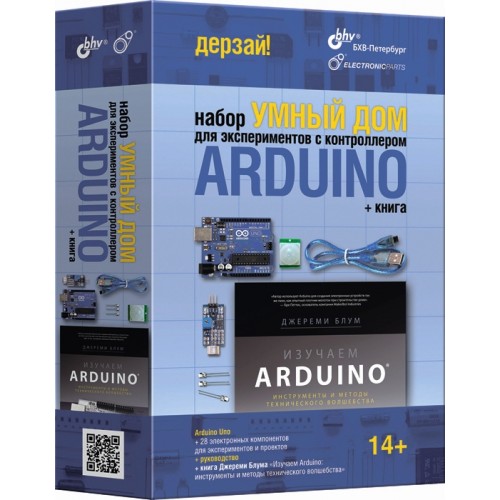 Набор "Умный дом" содержит всё необходимое для разработки полезных проектов по автоматизации вашего жилища с использованием платы Arduino: Arduino Uno, макетную плату, электронные компоненты и краткое руководство. В комплект входит популярная книга Джереми Блюма «Изучаем Arduino: инструменты и методы технического волшебства» (Дж. Блум), которая поможет вам изучить основы использования популярной микроконтроллерной платформы Arduino.