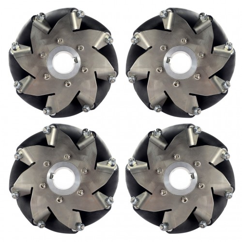 Набор стальных mecanum колес диаметром 152 мм - это колеса с повышенной допустимой нагрузкой до 50 кг. Набор включает в себя 2 правых колеса и 2 левых колеса.