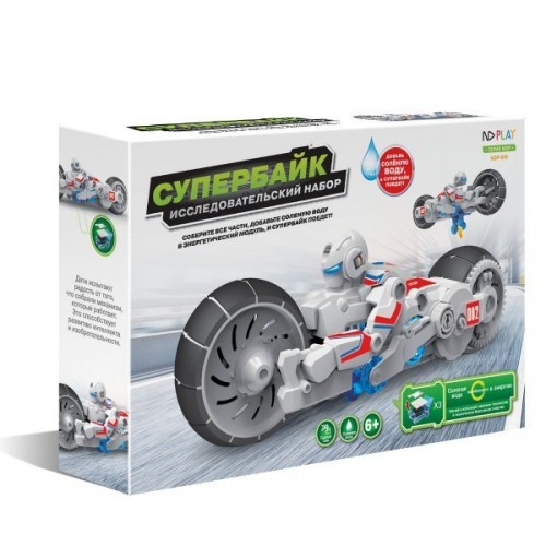 Мотоцикл ездит на простой соленой воде. Игрушка наглядно демонстрирует возможность получения энергии из соленой воды.