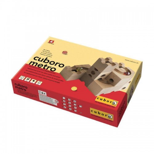 Набор Cuboro Metro является дополнительным к основным конструкторам Standard и Basis. Название Metro говорит само за себя – большинство кубиков оснащено различными внутренними тоннелями. В состав набора Cuboro Metro входит шесть кубиков, которые будут удерживать шарики благодаря своим внутренним тоннелям на среднем уровне. Кроме того, набор содержит кубики-ускорители, которые разгонят шарик до нужной вам скорости, а также кубики-«откаты» с желобом в виде небольшой горочки. Попадая на кубик-«откат», шарик не перескакивает горочку, а следует обратным маршрутом, который игрокам еще предстоит продумать.